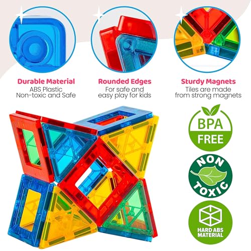 Exceeding Safety Standards for Peace of Mind: At Azayar, your child’s safety is our top priority. Our magnetic tiles for kids are made from BPA-free, non-toxic ABS plastic with smooth edges, ensuring safe play every day. Rigorously tested, these magnetic blocks meet all safety standards, giving you peace of mind