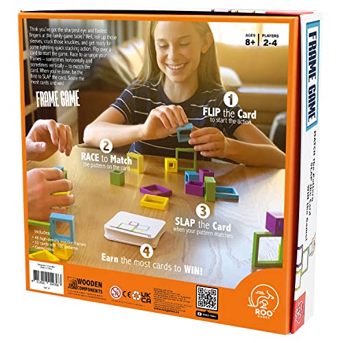 ROO GAMES Framed Game – Fast-Paced Stacking and Building Game – For Ages 8+ – Match the Pattern, Slap the Card, Win! – Great for Family Game night