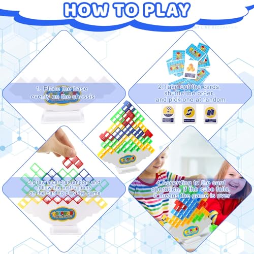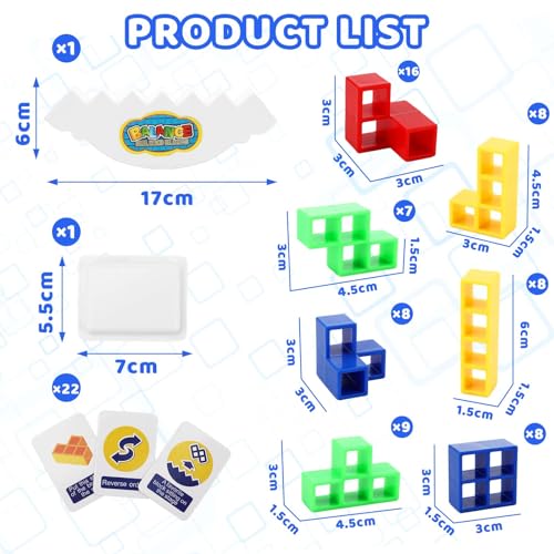 đ«ăMultiple Ways To PlayăEnjoy hours of fun with multiple ways to play. Single player challenge mode where kids can stack Tetris blocks to develop patience, balance and resilience. Two-Player Challenge Mode For a more interactive experience, the fun two-player game mode involves taking 22 cards, shuffling them and randomly drawing them. Follow the card prompts to decide your next move. The first player to place a block wins.