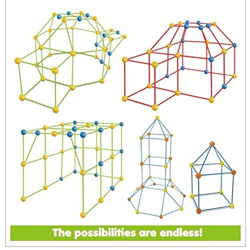 [Different Shapes] This fort building kit have more construction structure, castle, play tent, rocket, tunnel, house, igloo, cave, sphere, bunker, ship, airplane, villa, helicopter, mansion, name or DIY. Build & play indoor or outdoor. It’s sturdy to put the blanket or bed sheet on it. Good fun to make huge structures.