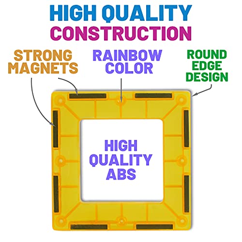 【Made With Powerful Magnets】 Each YIKUMO building tile is constructed of sturdy, long lasting translucent plastic and fused with hard ferrite magnets. This means each tile provides high resistance to demagnetization. Empower your child to play for hours, building spectacular vehicles and structures that stand strong and proud.