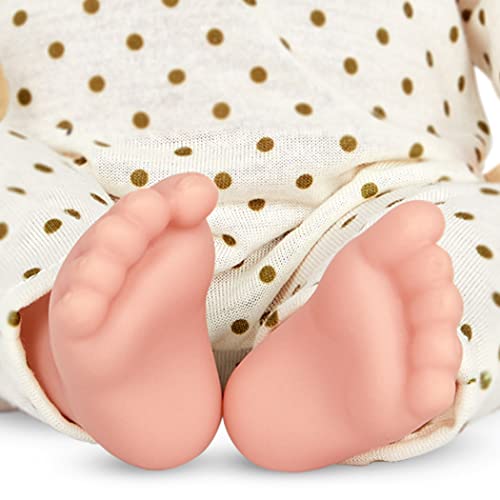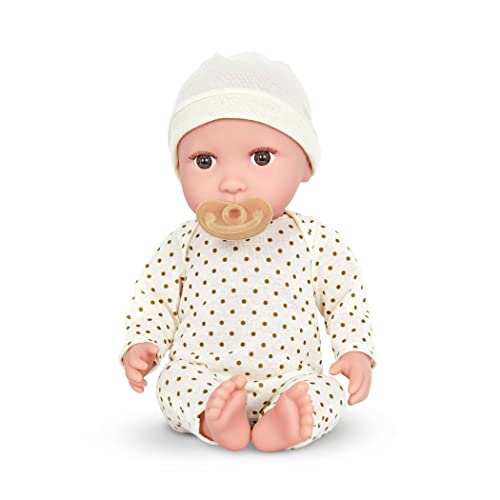 Includes the babi Doll, a cute polka dot romper, matching hat and removable pacifier The clothes have easy-to-open fasteners to quickly change the baby. The pacifier fits in Babi’s mouth