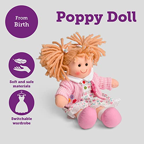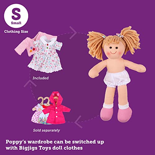Bigjigs Toys Poppy Rag Doll (Small) – 28cm Small Rag Doll for 1 Year Old, Ideal First Doll for Babies & Toddlers, Super Soft Dolls, Bigjigs Rag Dolls