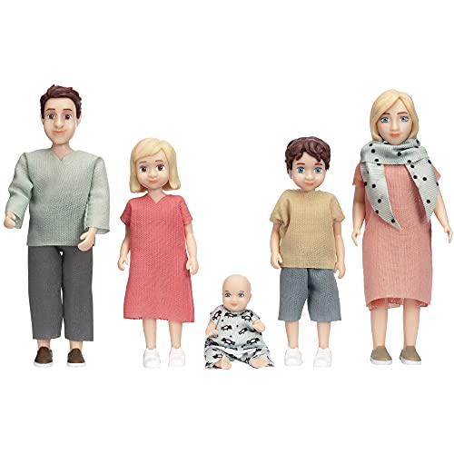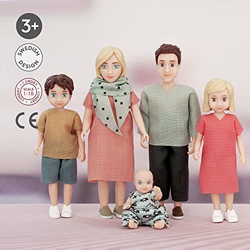 Lundby Doll House Dolls – Dollhouse People Figures – Toy Doll Charlie Family Set of 5 – 2 Adults + 3 Children – Dolls House Furniture Accessories – Bendable Plastic Mini Dolls for Kids Age 3+ – 1:18