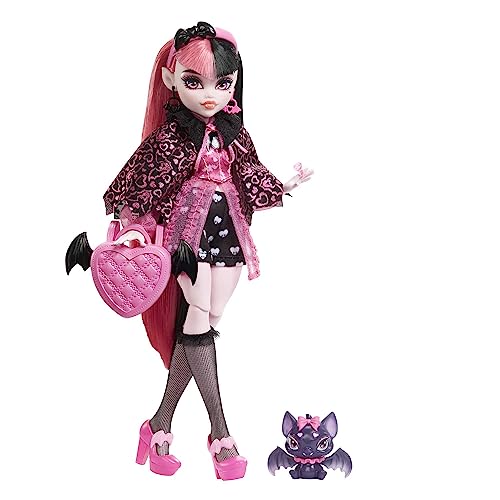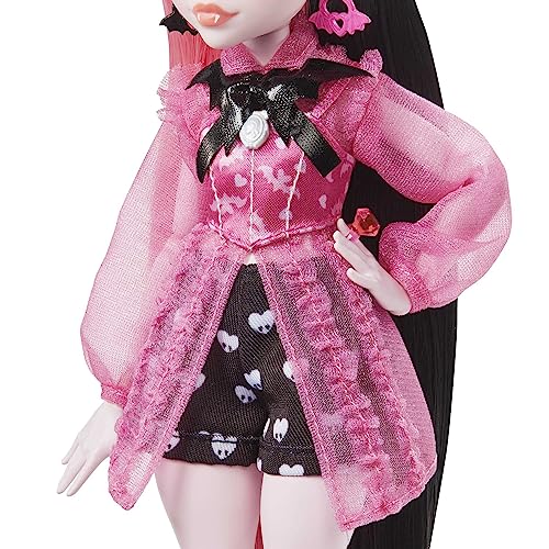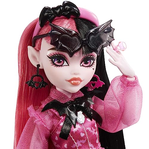 Monster High Draculaura Doll, Fashion Vampire Doll with Pink and Black Hair, Toy Bat Count Fabulous and Doll Accessories, Toys for Ages 4 and Up, One Doll, HHK51