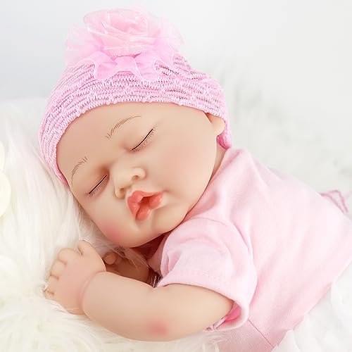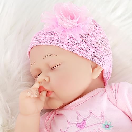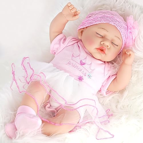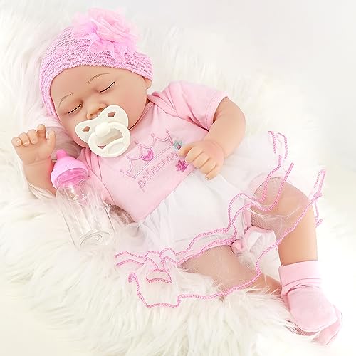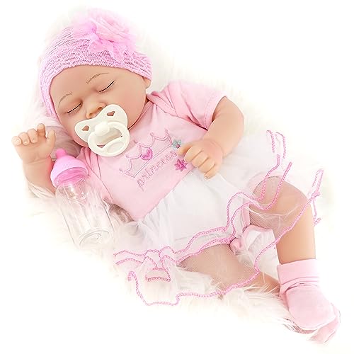 The Magic Toy Shop Bibi Doll – 17″ Realistic Reborn Baby Doll Girl Handmade With Sleeping Eyes, Pink Dress, Pacifier, Milk Bottle and Birth Certificate (Sleeping Girl)