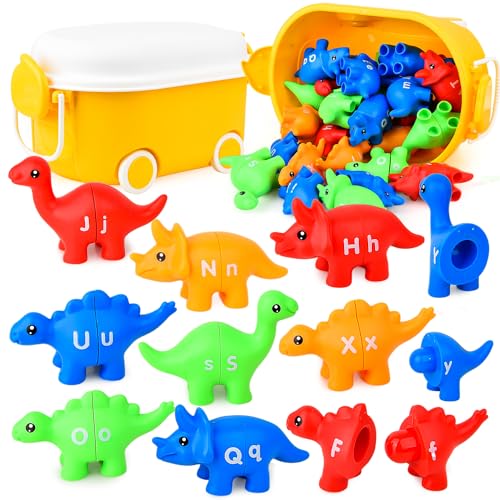 Dinosaur Matching Letters Toys 26PCS Double Side ABC Dinosaur Match Alphabet Game Larning Toys for Toddlers