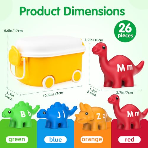 Complete 26 letter cognitive matching toy: The Sotodik dinosaur alphabet matching set comes with 26 letters colorful dinosaurs and a pullable storage box . This matching dinosaur toy pairs uppercase and lowercase letters for hours of learning fun!