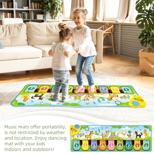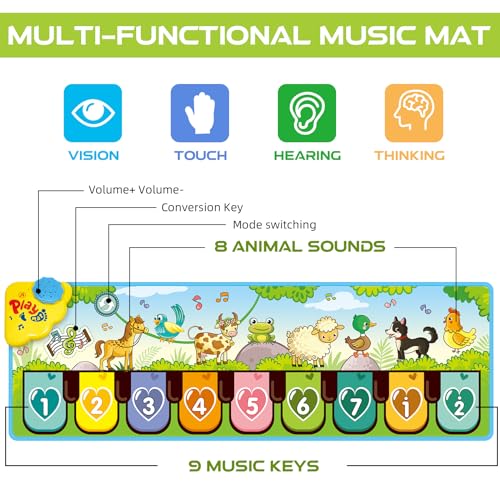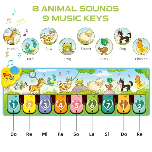 Kids Musical Piano Mats, 43.3” x14.1” Floor Piano Keyboard Mat with 8 Animal Sounds Blanket Touch Playmat Funny Touch Play Dancing Mat Early Education Toys for 3+ Years Old Girls Boys Gifts