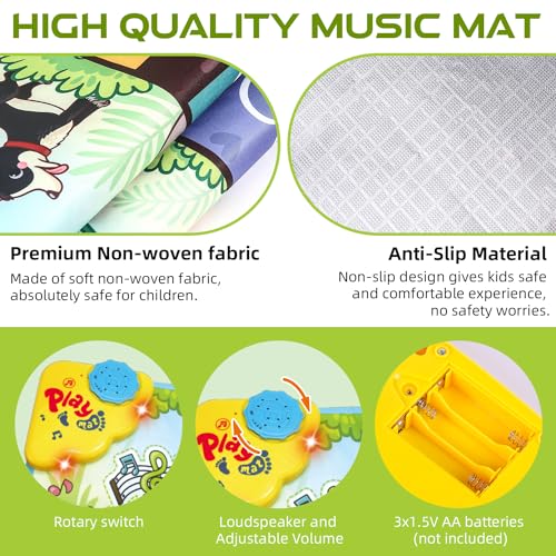 【Easy to Play】: The musical mat contains 26 built-in sounds, including 8 animal sounds, 9 music keys and 9 demo songs. It has one music switch button, which makes it incredibly easy to switch between different play modes (music key/animal sound/demo song). This music play mat keeps your child fun for hours and also helps kids to gain music knowledge.