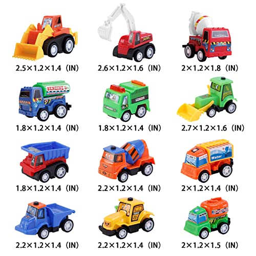 12 PCS Construction Toy Pull Back Digger Mini Vehicles Excavator Bulldozer Truck Toy For Kids Boy Girl Toddlers Party Favor Cake Decorations birthday gift