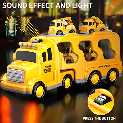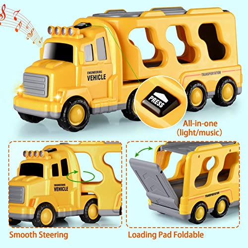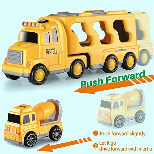 5 in 1 Toddler Cars Toys Construction Toddler Truck Toys for 6+ Year Old Boys, Friction Power Toy Vehicle Carrier Truck Toys for Kids 3-5, Christmas Birthday Gifts for Boys Girls – 6+ Ages