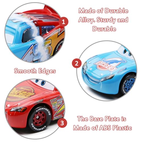 【Perfect Size】Lightning McQueen Cars crafted with a chunky rounded design, each mini car is about 8*4.2*4.3cm and is designed specifically for toddler and younger children’s hands to grip and play with.