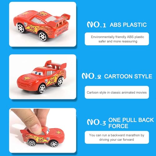 Premium Material:The mcqueen pull back cars are made of high quality ABS an organic die-cast into form, elaboration by 24 processes and polish again and again, which makes the car exquisite just as a handicraft!