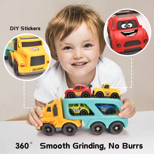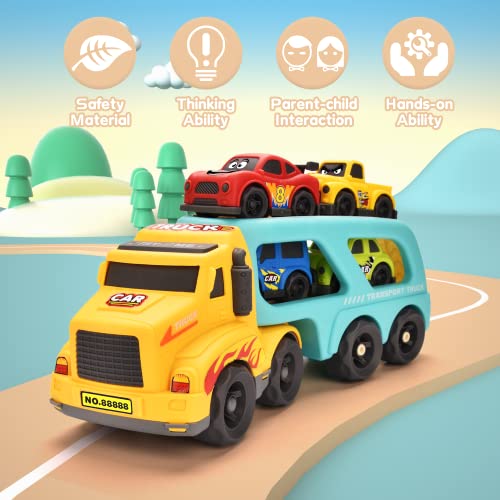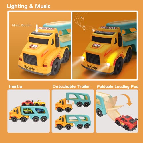 Hodlvant Carrier Toddler Trucks Toys 5 in 1 Cute Cartoon Transport Cars for Kids, Play Vehicle with Light and Music, DIY Carrier Truck for Baby Boys Girls