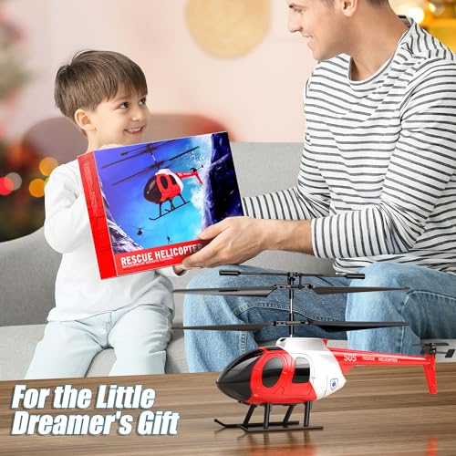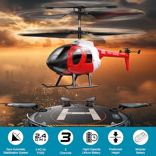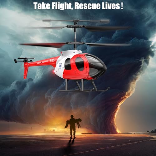 Ancesfun Remote Control Helicopter, Rescue RC Helicopter with Gyro and LED Lights, 2.4GHz Radio 3 Channel One-Key Take-Off Mini Airplane for Plane Fans, Flying Toy Gift for Kids Boys Girls 14+