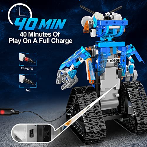 🔋【USB Design for Easy Charging】With a built-in rechargeable battery and powerful high-performance motor, the kids robots toys can run for 40 minutes after a full charge, long enough for children to immerse themselves in the programming of the robot. You can plug the USB cable of the robot kits into a plug/mobile power/computer outlet to charge electricity anytime and anywhere.