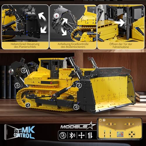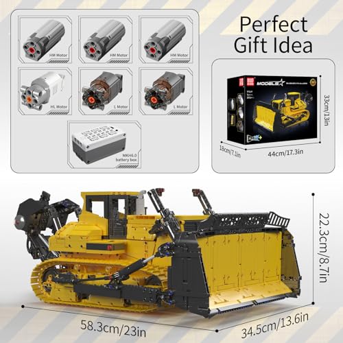 Mould King 17049 Engineering Bulldozer Building Blocks, App-Controlled Crawler Excavator with 6 Engines Building Kits Toy Gift Set for Adults (3774 pieces), Yellow