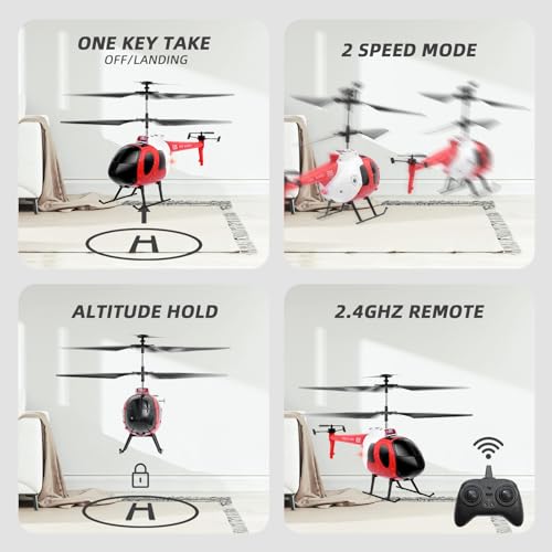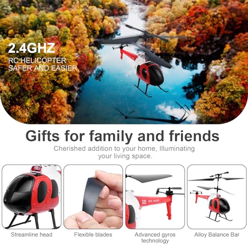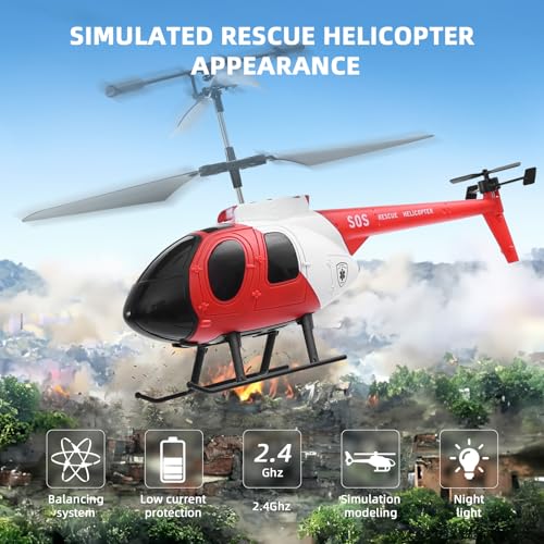 RC Helicopter, Rescue Remote Control Helicopter with Gyro and LED Lights, 2.4GHz Radio 3 Channel One Key Take Off/Landing High &Low Speed, Flying Toy Gift for Boys and Girls