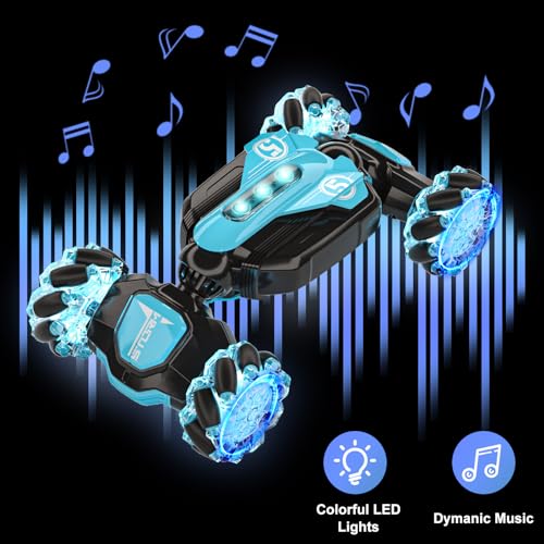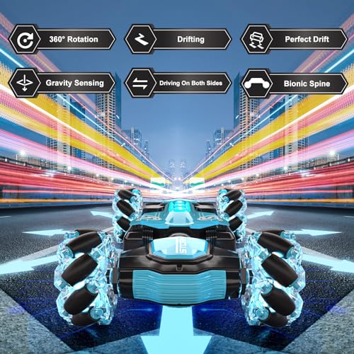 TekValue RC Stunt Car Toys, RC Cars Remote Control car for Boys 360°Rotating 4WD RC Stunt car Transform 2.4Ghz Hand Controlled Toys for Boys Birthday Presents for Kids (blue)
