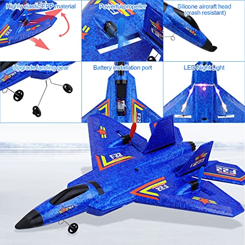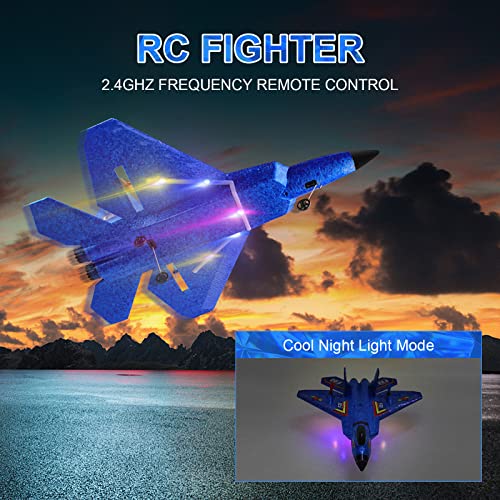 yusvwkj RC Airplane 3CH Remote Controlled Fighter 2.4GHz RC Airplane RTF for Beginner, Kids and Adults, FX22 Airplane Toy with With Colored LED Lights USB Charging
